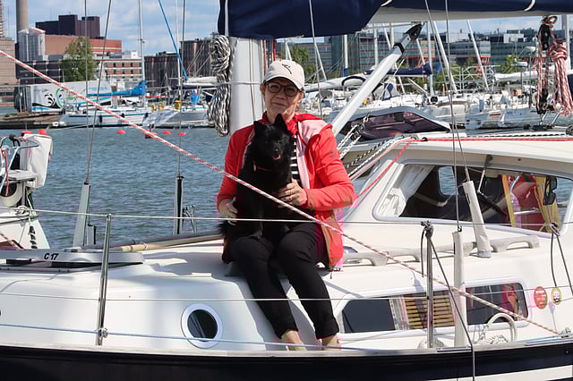 ”Mutta sitten rupesin kisagastiksi eri purkkareihin, opin lisää ja sain rohkeutta. Minähän sitten innostin ja opetin aviomieheni Kimmon, joka ei ollut aiemmin purjehtinut. Mä olen meidän veneessä kapteeni, hoidan navigoinnin ja lasken ja suunnittelen reitit. Kimmo hoitaa purjeet.”
