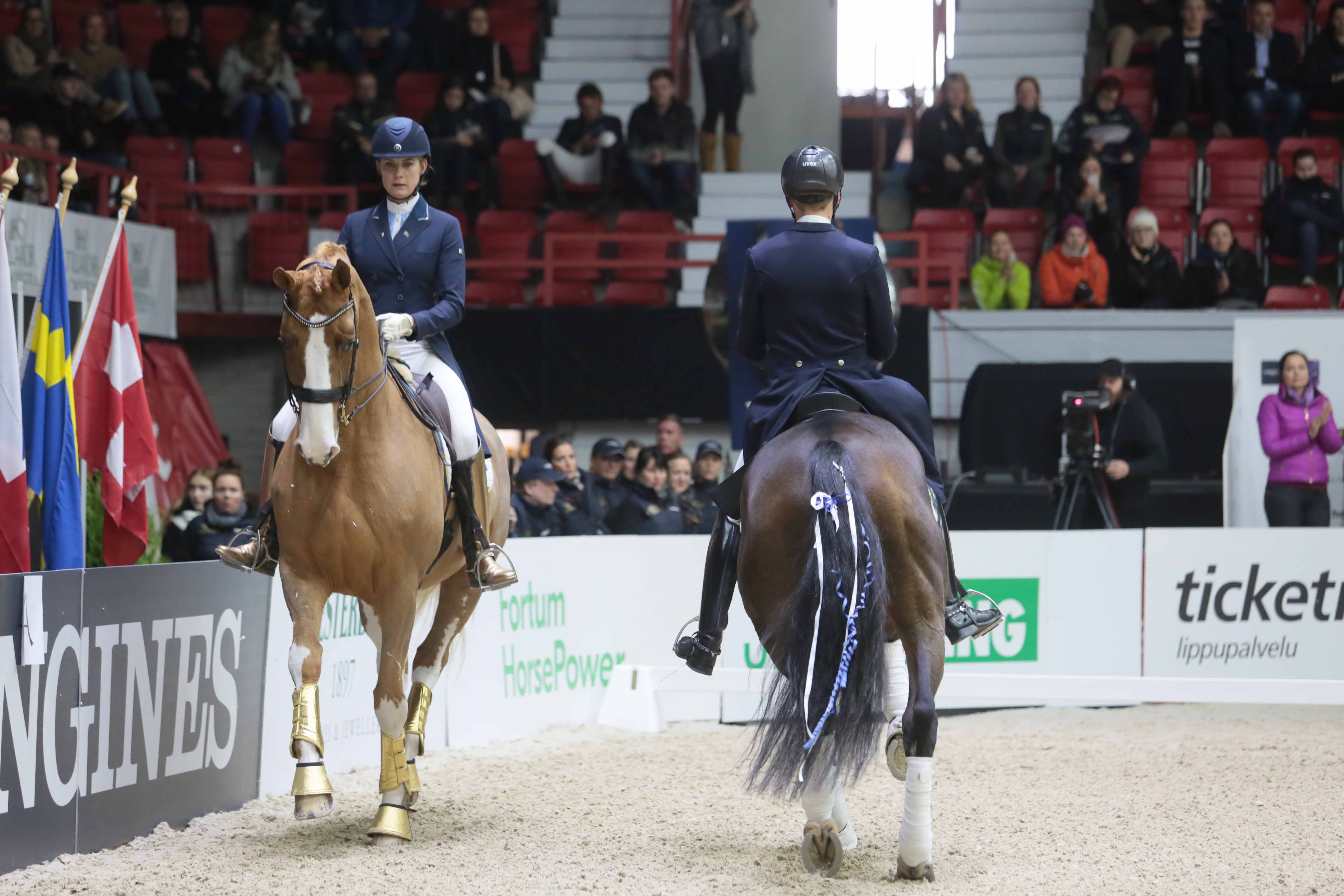 Hilkulle se meni, vaikka von Wendt onnistui välierissä sijoittamaan ohjelman ulkopuolelle näyttävän courbetten. Kaiken kouluratsastuksessa viikonloppuna voittanut Henri Ruoste vei teemaan sopivasti koti-Saksaan myös viikonlopun viimeisen luokan voiton.