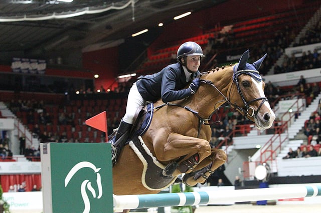 Susanna Granroth ratsasti Baccaralla odotetusti 3 lähtijän miniluokassa senioreiden hallimestariksi Ypäjä Easter Showssa sunnuntaina.