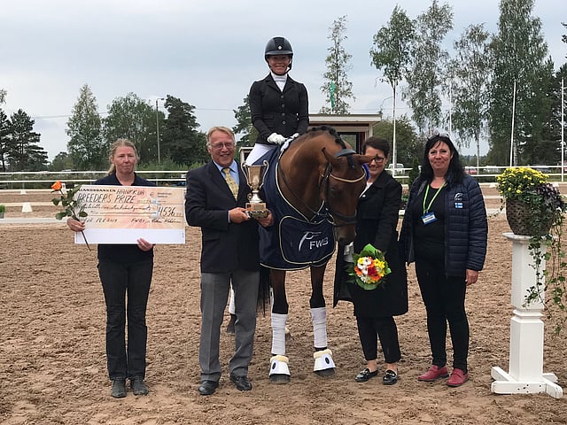 Toiseksi ratsasti Lina Bärlund First Finn Royalilal (Royal Floggensee - Ferro), kolmas oli Laura Paataja Felitzia K:lla (Fürst Romancier - De Niro).