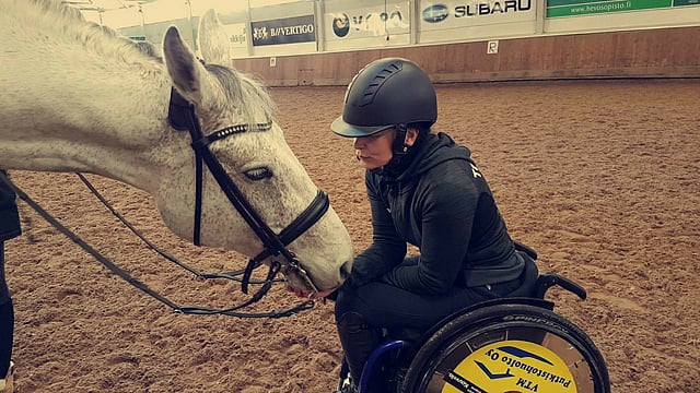 Hän ratsasti uudella hevosellaan Legolasilla. Hevonen suoritti hyvin, vaikka se oli jonkin verran väsähtänyt pitkästä ajomatkasta Ruotsin halki Belgiaan.
