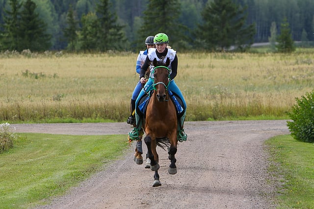 Sää suosi matkaratsastuksen SM-kilpailuita keskisessä Kymenlaaksossa, sillä sadetta ei saatu ja lämpötila oli korkeimmillaan 18 asteen kieppeillä. Reitti käsitti kaksi 32 kilometrin lenkkiä, sekä lopuksi 16 kilometriä.
