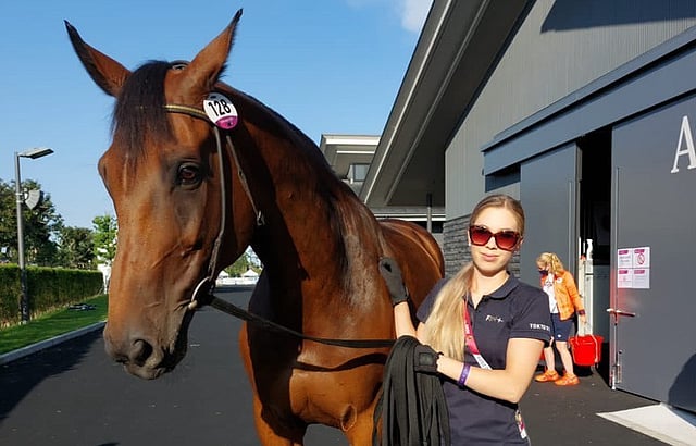 Kontestron suomalainen hoitaja Sara Liljeström viettää päivät tallilla varmistamassa, että huippuhevosella on kaikki kohdillaan.