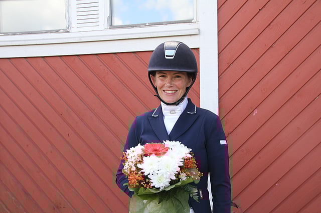 Hän toivoo nyt pääsevänsä normaaliin rytmiin ratsastuksessa. Kotona on 3 treenihevosta ja yksi siitoksessa. Jenni Linnan alla hyvinkin menestyksekkäästi nähty, appiukon omistama 9-vuotias estesukuinen kimotamma Catfigt L (Catcall - Jabot) sen sjaan on etsinyt uutta kotia Hagelstamin tallissa.