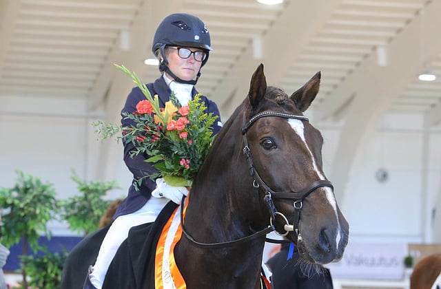 "Koska oli päättänyt, että tänään se loppuu, olin valmistautunut rataan todella huolella. Halusin, että kun myöhemmin katselen suoritustani videolta, voin lopun elämääni olla tyytyväinen siihen", Kärkkäinen kertoo. Voitto tuli, ja suomenhevosten hallimestaruus siinä samalla, kuten tälle ratsukolle tavanomaista on, mutta myös erittäin hyvät prosentit 74,367. Yksi tuomareista antoi jopa yli 80 prosenttia.