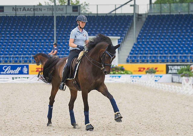 Emma Kanervan ja Sini Solinan EM-debyytti päättyi siihen, että Sini Solina menetti hermonsa viimeisellä pituushalkaisijalla piaffin jälkeen.