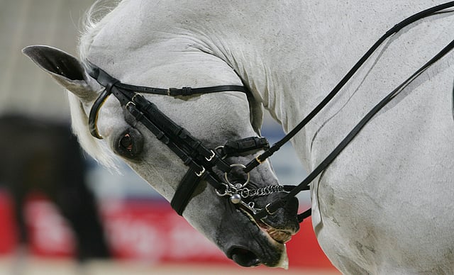 Sportbladetin jutussa näkyy naisen, 42-vuotiaan Jennyn, ennen viime lauantain GP-luokkaa Falsterbossa ottama kuva, jossa estehevosta ratsastetaan leuka aivan rinnuksissa kiini.